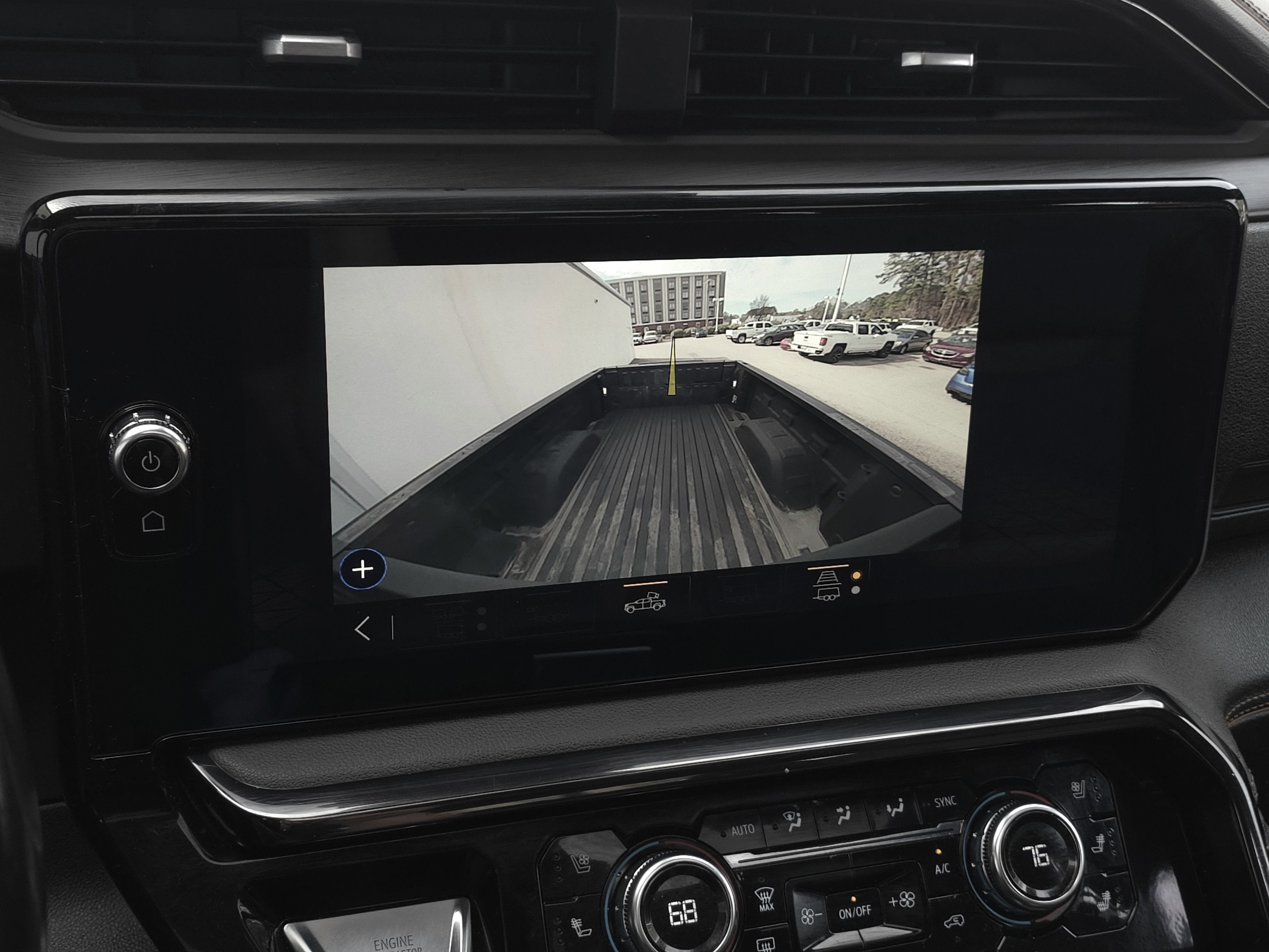 - Allows driver to see inside the cargo bed on the infotainment display to help with 5th wheel or gooseneck hitching and to check cargo